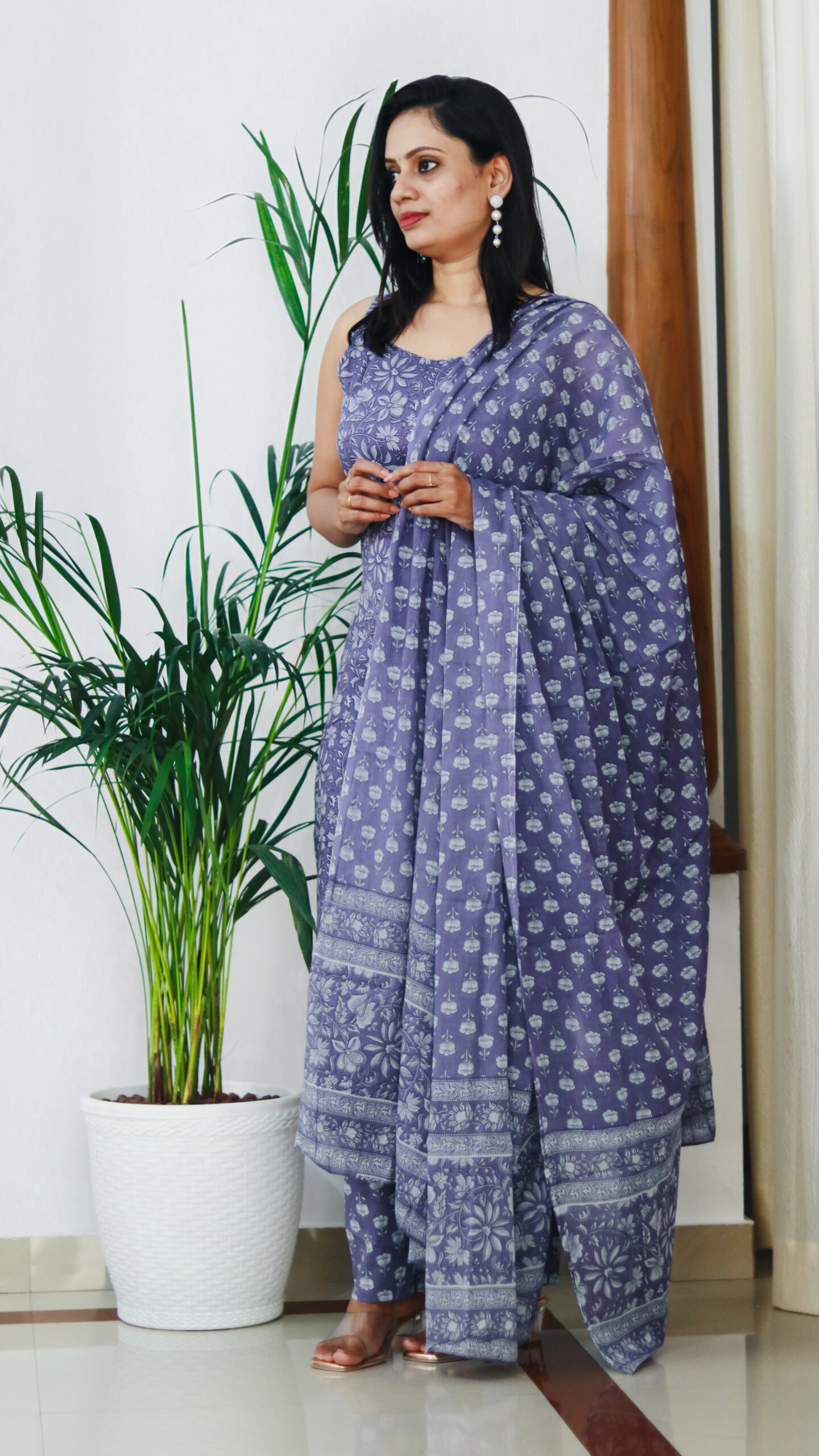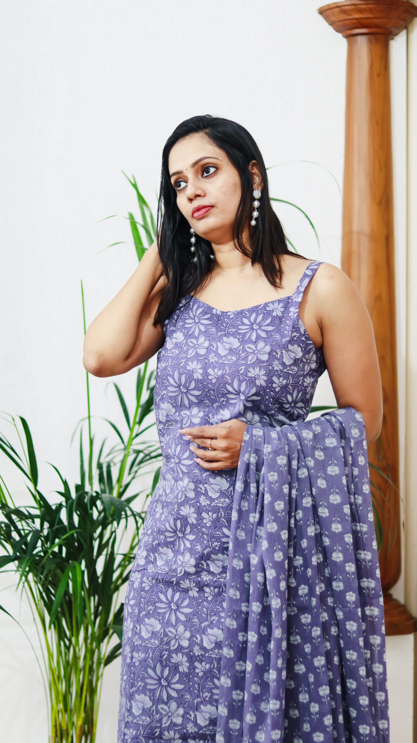 Lavender charm Cotton Sleeveless Kurti Pant Set with Dupatta